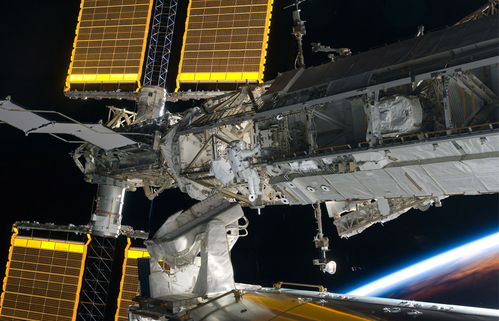 During the six-hour, 52-minute spacewalk, Bowen and astronaut Heidemarie Stefanyshyn-Piper (out of frame), mission specialist, worked to clean and lubricate part of the station’s starboard Solar Alpha Rotary Joints (SARJ) and to remove two of SARJ’s 12 trundle bearing assemblies. The spacewalkers also removed a depleted nitrogen tank from a stowage platform on the outside of the complex and moved it into Endeavour’s cargo bay.