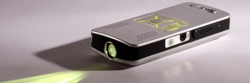 Aiptek’s PocketCinema V10 pico projector [The World’s Smallest] so small you can hold it in your hand. With 1GB internal memory, the V10 also accepts SD, MMC and MS Pro memory cards, giving you instant access to movies and photos, without needing to wire up a secondary video source.
