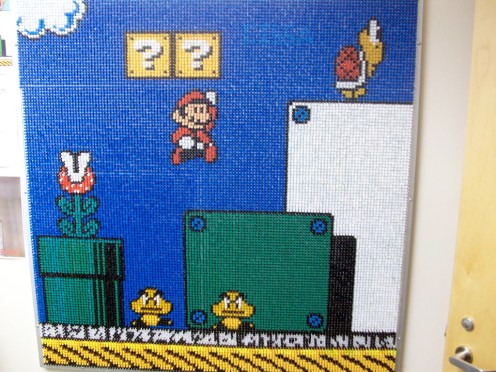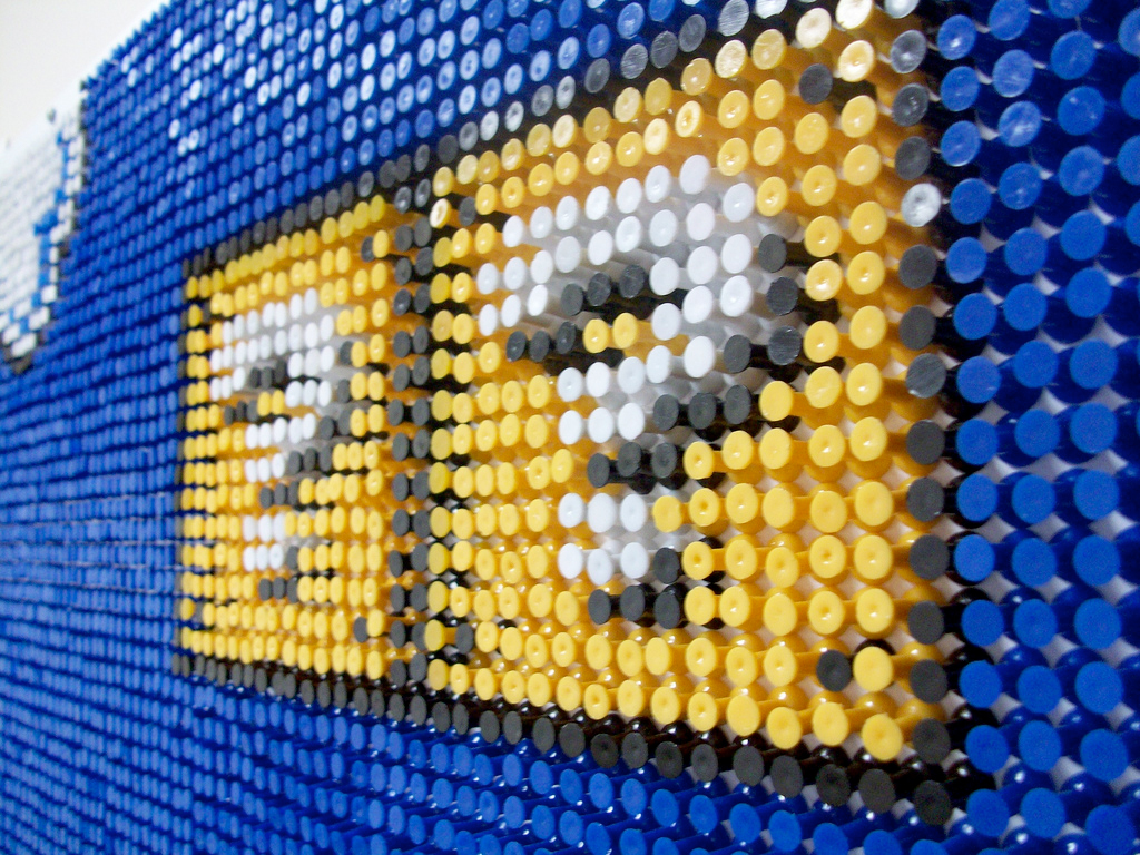 What you’re looking at it is a 17,000 push-pin mosaic mural, a product of three revisions and a total of two and a half semesters of work. The final revision took a whopping two months of work by the CIS Student Association at the University of the Fraser Valley, and it’s currently sitting in the Student Computing Center over there.