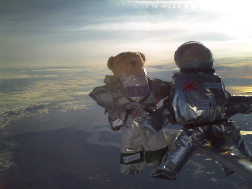 Students from Parkside and Colleridge schools helped to launch four teddies wearing space suits that they had designed. The teddies reached an altitude of just over 30 km and their temperatures were logged throughout the flight to see how they fared in the extreme cold. The different spacesuit designs resulted in distinct difference in the temperatures of the teddies.