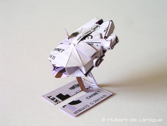 Hubert de Lartigue/a Star Wars fan made an X-Wing Model and the Millennium Falcon using Paris Metro Tickets: