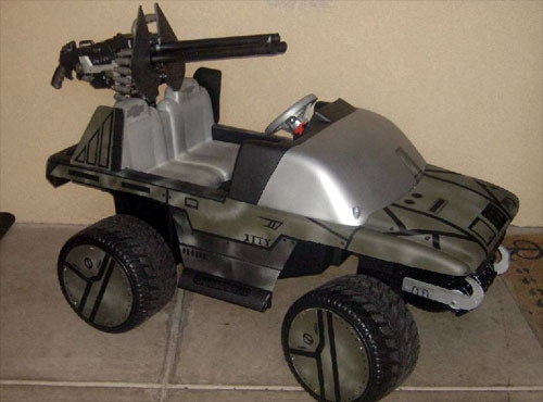 Using a Power Wheels truck, flux83 puts other dads to shame with a Warthog conversion for his kid; it’ll seat up to two mini-Spartans and includes a Vulcan made out of PVC pipes.