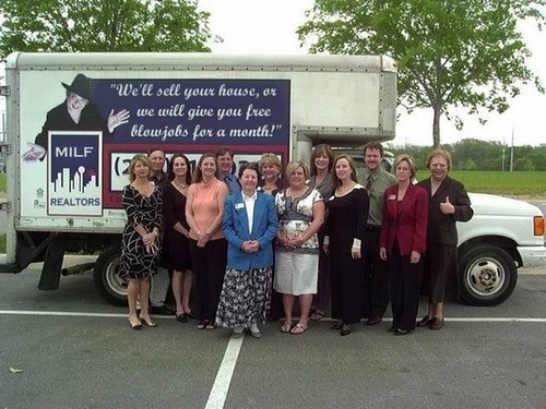 Tags: "I'll take the lady on the far right she looks like a real go-getter!", Business must be booming then?, Crazy, Fail/Win, MILF Realtors - We'll sell your house or we will give you free blowjobs for a month!, Nice company slogan. It's kind of a win win situation for these elderly realtor nymphos wouldn't you say, What recession?, WTF