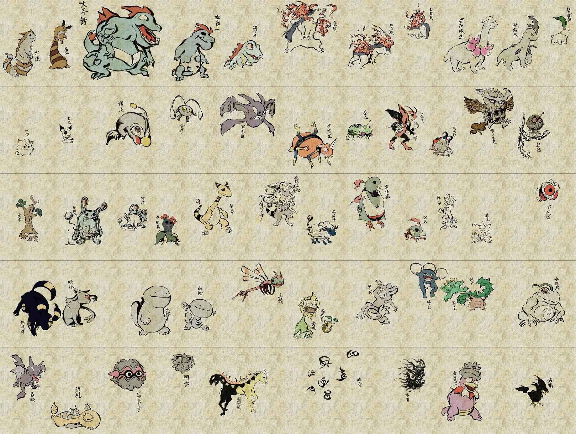 Now this is what I’m talking about; Pokémon drawn as if they were demons from 12th century old Japanese scrolls. Come to think of it, Pokémon set in feudal Japan would be pretty sweet. Less plush-toy and more badass, mythological, original Pokémon!!!