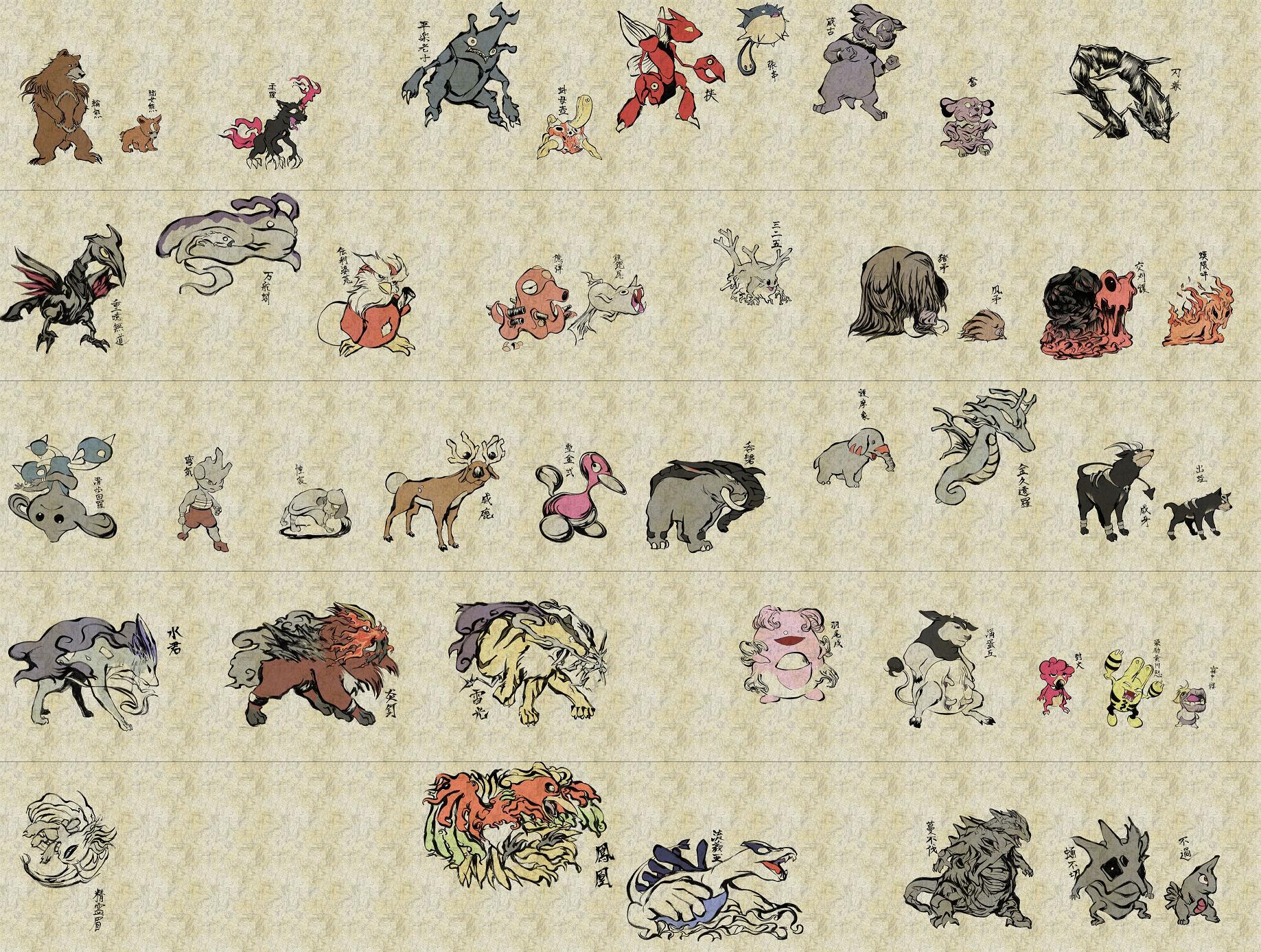 Tags: Japanese Awesomeness, less plush toy and more badass mythological original Pokémon, Pokémon As Traditional Japanese Art, Pokémon drawn as if they were demons from 12th century old Japanese scrolls, Pokémon set in feudal Japan would be pretty sweet, Pokemon Master