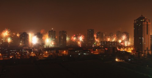 Fireworks illuminate the skyline to celebrate the Lantern Festival on February 13, 2010 in Beijing, China. [Feng Li]