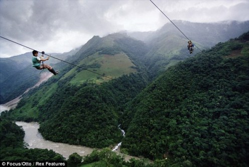 Photographer and author Christoph Otto, who took these amazing pictures, suspended himself above the valley on one of the cables to capture people making the remarkable journey. [via dailymail]