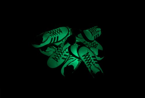 Adidas Originals is ready to rave with these Campus 80s shoes infused with a phosphorescent dye which lets them glow in the dark. They’re available starting 4/10 at Germany’s No74 Berlin.