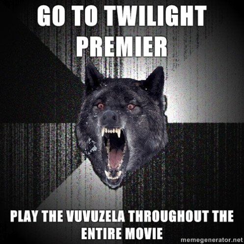 Tags: 'Courage Wolf' and His Randomly Hardcore Words of Wisdom, Courage Wolf on 'Twilight', Kevin Smith Defends ‘Twilight’, The Twilight Saga, Twilight crap, Twilight vs Blade = EPIC WIN, World Cup Vuvuzelas