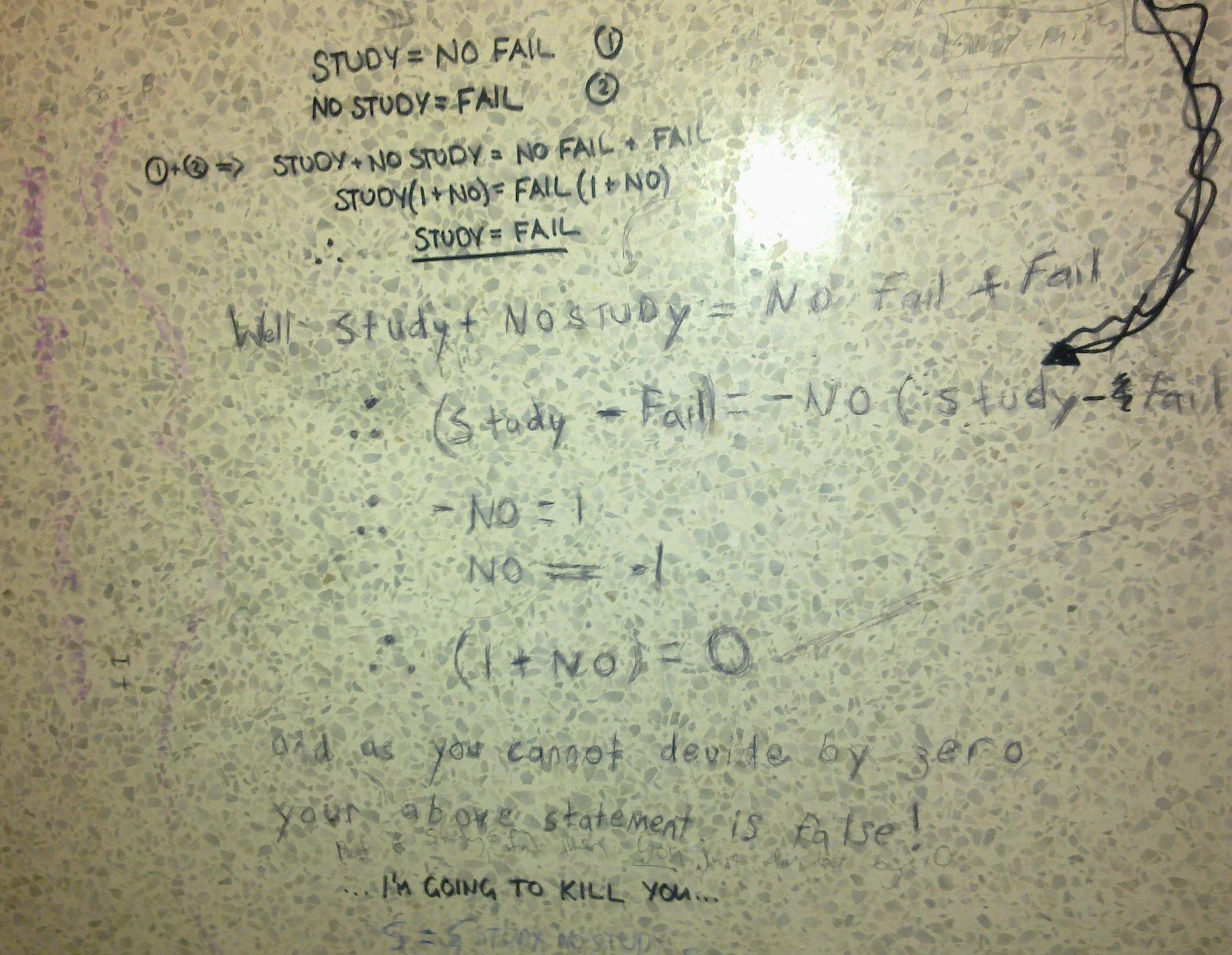 Written on the toilet wall of the Faculty of Mathematics at my Uni