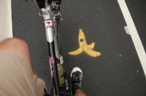 Some cool person has gone and painted bananas on this street. A bike lane video game – Maybe this will encourage more young people to go biking …or just eat more bananas: