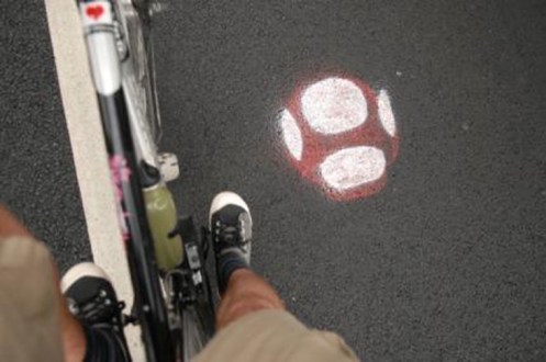 Apparently though raindrops on paint are deadly for cyclists, and for motorcyclists. So let’s hope this good-natured vandal has been eating his stars in the morning.