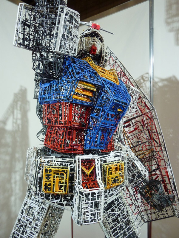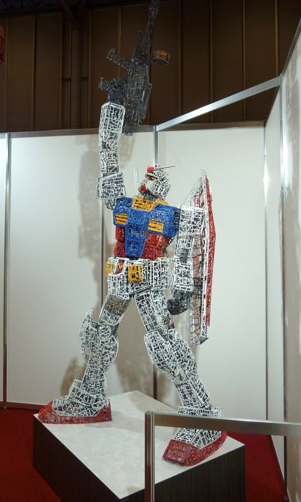 It took over 250 man-hours to build the RG (Recycle Grade) RX-78-2 Gundam, which measures in at nearly 10-feet tall. Of course, it was built almost entirely from the spare plastic runners and part trees from smaller Gundam model kits. – technabob