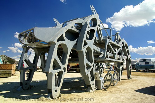 It took Martin Montesano about three years to build the Walking Beast, a 6.5 ton, 11 x 8.4 x 24 ft mechanical spider. It’s powered by a Chevy V8 engine and can carry 8 people and yes, that is a mounted, functional flame thrower:
