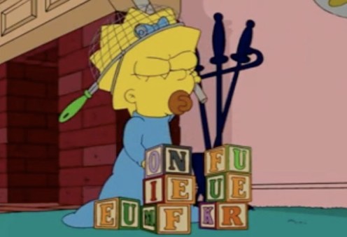 Tags: 'The Simpsons' characters and their Voice Actor Counterparts [infographic], ...Is that a Maggie thing to feel frustrated enough to want to say? (I think she's a genius), ...You fuck 1 on 1 you mother fucker..., Banksy, Code Cracker = need a hobby, Does this mean I'm BATSHITCRAZY!!!, Genius has side effects, I'm such a loser, Maggie Simpson's naughty message & Banksy's Couch Gag [cameos & easter eggs], The Simpsons, What If The Simpsons was Set in Estonia?