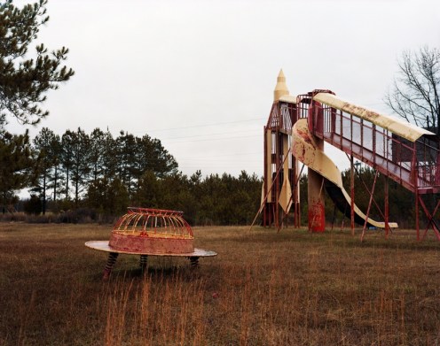 Over a span of 6 years, artist Lauren Orchowski drove throughout North America documenting the Cold War-era rocket ship playgrounds with her 8 x 10 view camera.