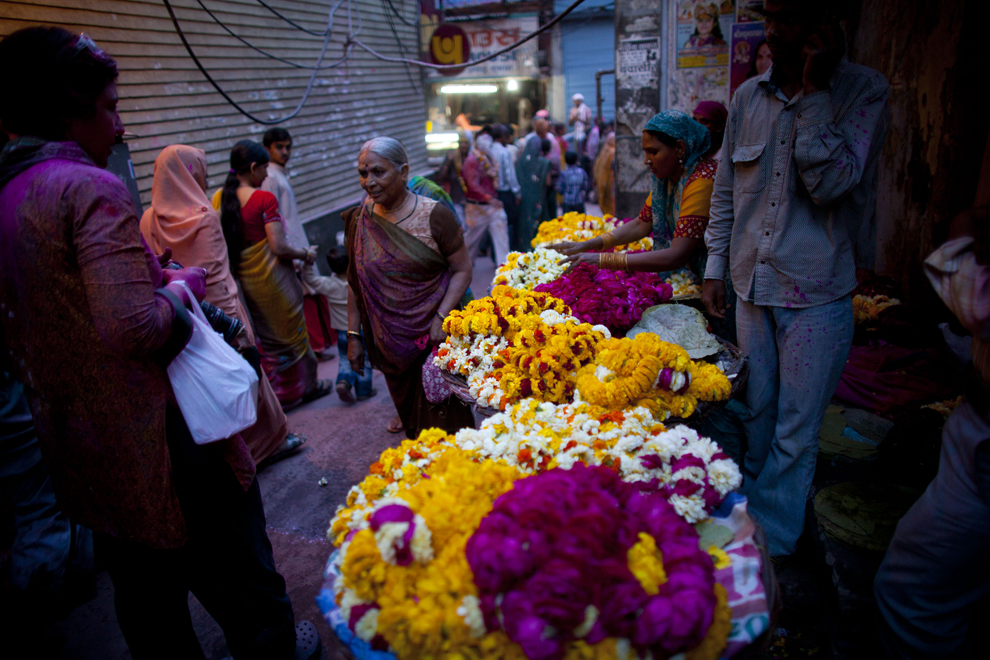 Hindus buy baskets of flower during Holi celebrations at the Bankey Bihari Temple on March 21 in Vrindavan, India. Holi, the spring festival of colours, is celebrated by Hindus around the world in an explosion of color to mark the end of the winter.
