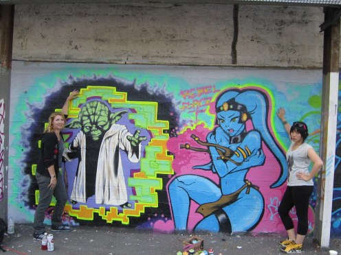 Tags: Art by zzZelot (left) and Hera (right), I ♥ Street Art, R2-D2 Vacuum Street Art, Yoda putin the moves on a Twi'lek [street art]