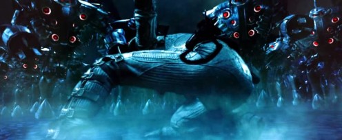 After performing a particularly cool move, or dropping from a great height, the character lands on the ground in a crouching position, feet wide apart and supporting their weight with one hand on the floor while the other hand is outstretched away from their body, usually pointed diagonally upwards.