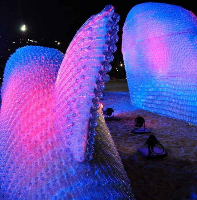 Massive Fish Sculptures Made from Discarded Plastic Bottles at Botafogo beach in Rio de Janeiro, Brazil