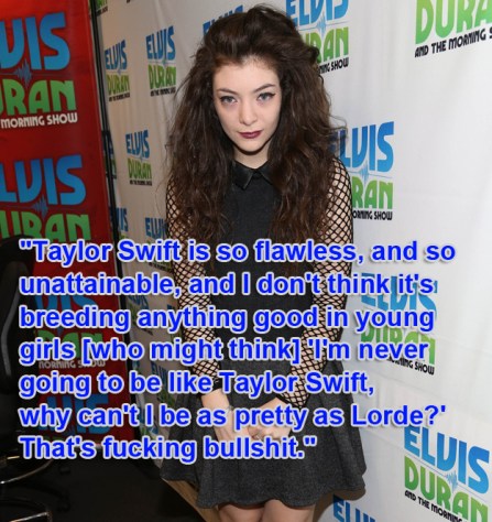 To clarify, Lorde explained her remark on her tumblr page in response to a fan’s question. “…i think i cocked that up a bit and what i said wasn’t put in context also. what i meant was: there’s a lot of importance placed on physical perfection in this industry, and i wish my favourite stars didn’t look perfect because i think fans (me included) have these feelings of worthlessness, like they’ll never be as pretty/talented/whatever, as a result of this intense photoshop culture and the endless strive for perfection…”
