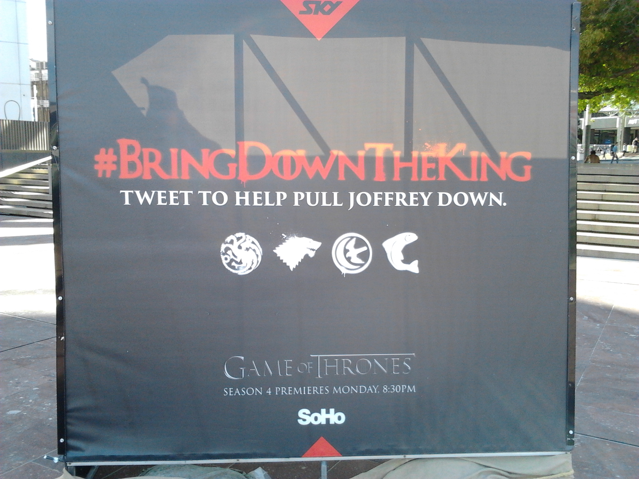 Tags: #bringdowntheking, GAME OF THRONES, Marketing, The Universally Hated King Joffrey is in Auckland's Aotea Square, Twitter