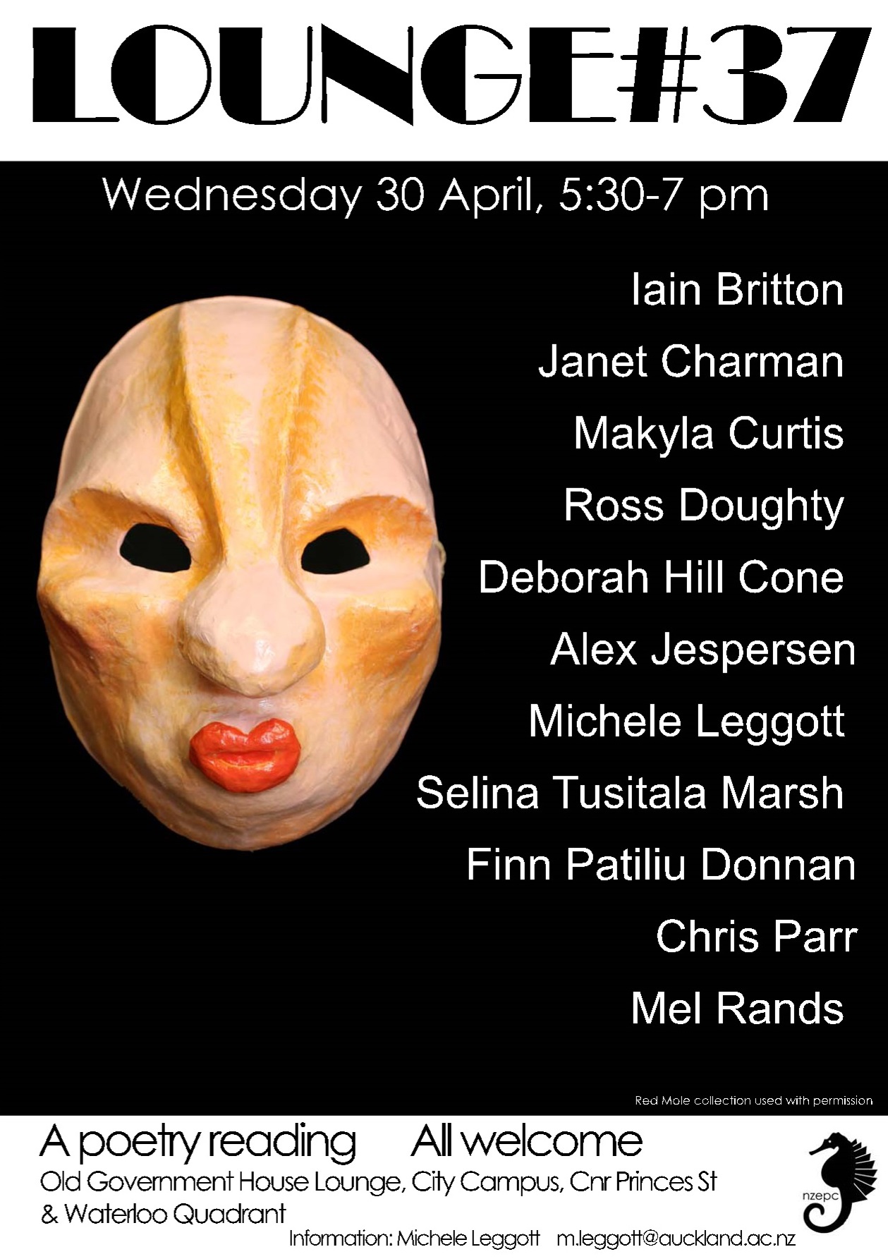 Tags: Findlay Patiliu Donnan, It's on like Donkey Kong, Lounge #30 [F], Lounge #37 Wednesday April 30th at Auckland University, Lounge #37...ARGH [F], Makyla Curtis, Michele Leggott, Selina Tusitala Marsh