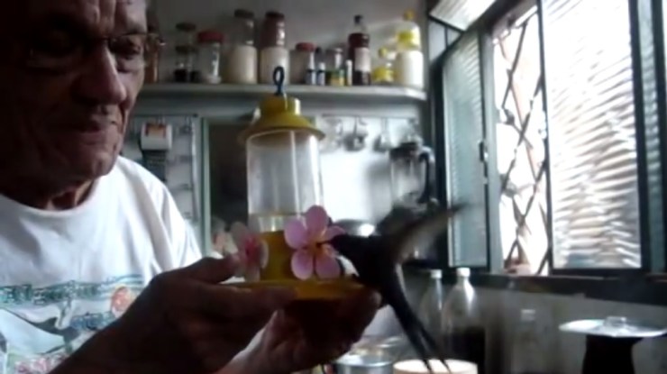 A Man in His Kitchen is Visited Daily by Hummingbirds