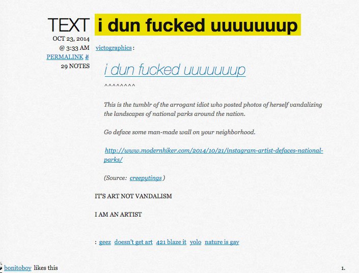 Narcissistic Street Artist Casey Nocket Leaves Her Indelible Mark in (Wait for It) National Park Preservations, with (Wait for It) Arcylic Paints