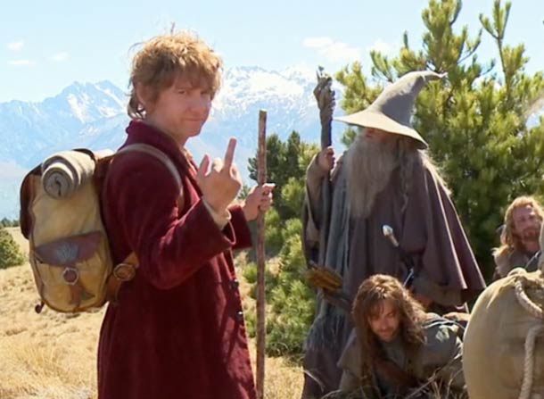 One Finger to Rule Them All — Martin Freeman Flipping the Bird on Set of THE HOBBIT