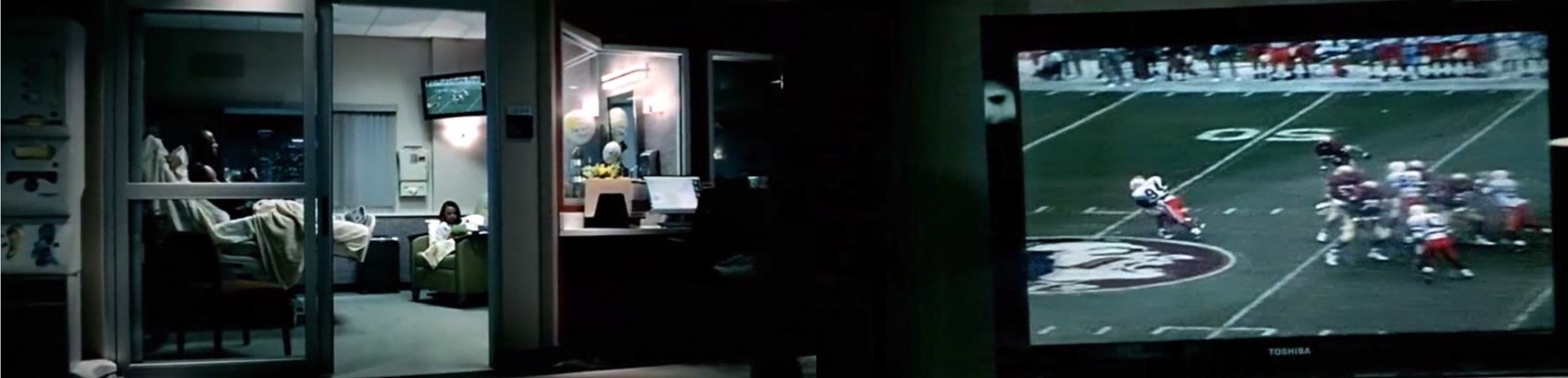 I dunno. Maybe I’m just batshit crazy. Not a spoiler, just mentioning another easily missed easter-egg here; later on in the same movie, while Hobbs (The Rock) is in the hospital, he watches a football game play on that same TV: