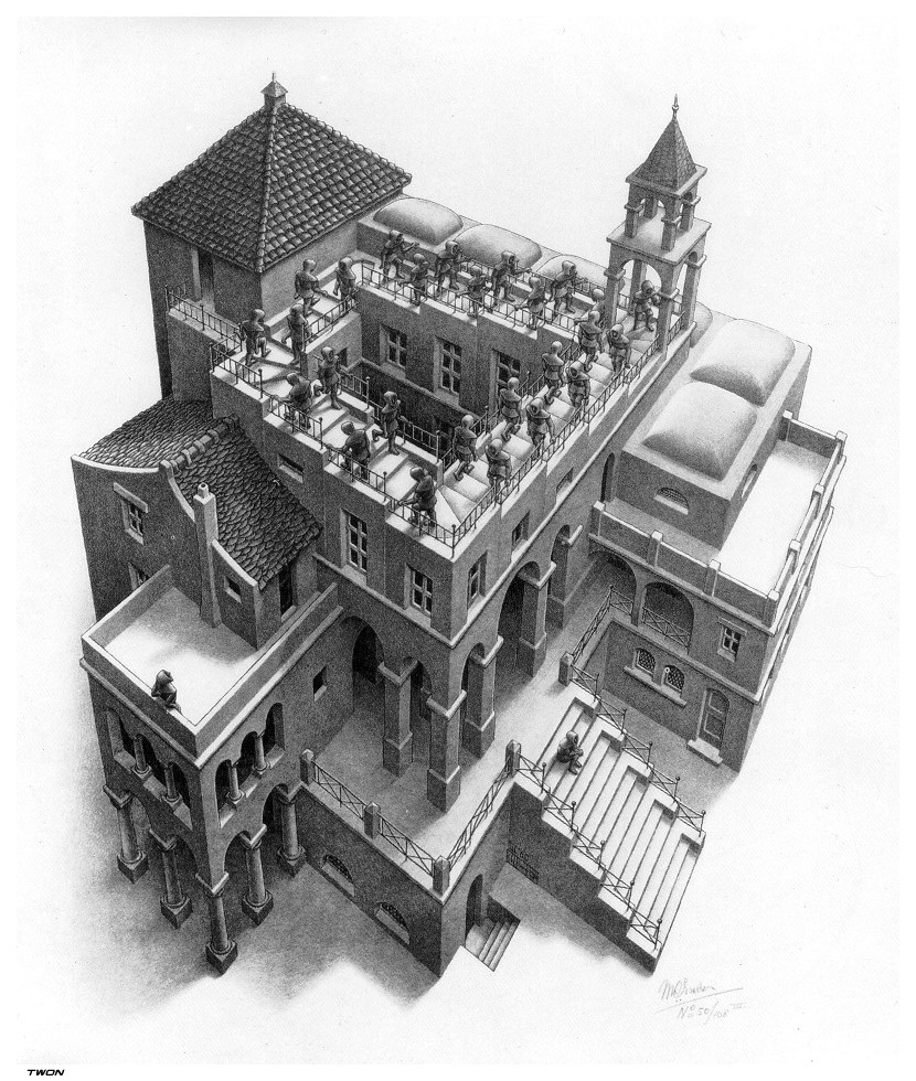 If this machine actually turns out to be a perpetual one, I wouldn’t be surprised if all energy producing companies saw this as a threat to big business (like Nikola Tesla all over again). Reminds me of M. C. Escher’s Ascending and Descending (1960), don’t you think?