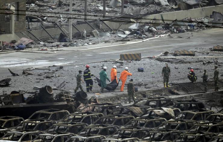» Firefighters carry the body of a victim from the site of the explosions on Friday, Aug. 14. (Jason Lee)