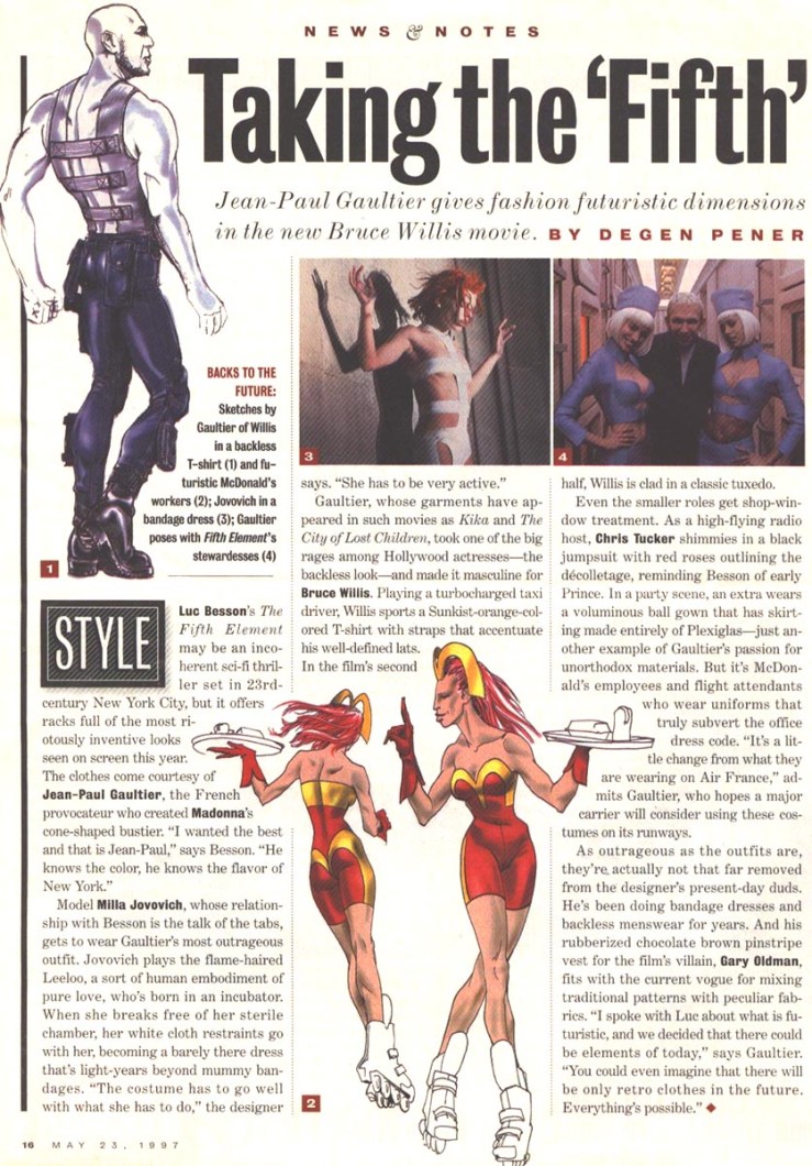 » I love Jean Paul Gaultier’s work in The Fifth Element