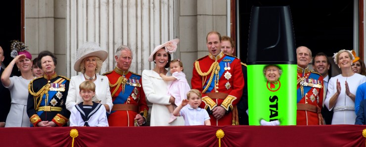 LONDON, ENGLAND – JUNE 11: (L-R) Zara Tindall, Anne, Princess Royal, Camilla, Duchess of Cornwall, Charles, Prince of Wales, Catherine, Duchess of Cambridge, Princess Charlotte of Cambridge, Prince George of Cambridge, Prince William, Duke of Cambridge, Prince Harry, Queen Elizabeth II Prince Philip, Duke of Edinburgh and Sophie, Countess of Wessex watch a fly past during the Trooping the Colour, this year marking the Queen’s 90th birthday at The Mall on June 11, 2016 in London, England. The ceremony is Queen Elizabeth II’s annual birthday parade and dates back to the time of Charles II in the 17th Century when the Colours of a regiment were used as a rallying point in battle. (Photo by Ben A. Pruchnie/Getty Images)