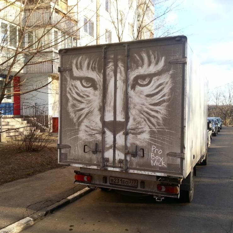 “Dirty Art” by Illustrator Nikita Golubev — Animals Etched onto Dirty Cars