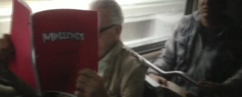 Capt. Marvel passes Stan Lee on a train reciting lines from a script titled MALLRATS, a movie that came out in 1995 that Stan Lee made a cameo appearance in, as himself.