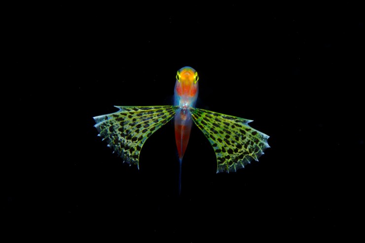 Abdominal fin of an unconventional trough pattern is large enough to ensure buoyancy. Body length: 35mm