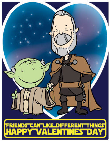 James Stowe has a neat collection of Star Wars cards for Valentine’s Day. There are six cards, one for each episode.